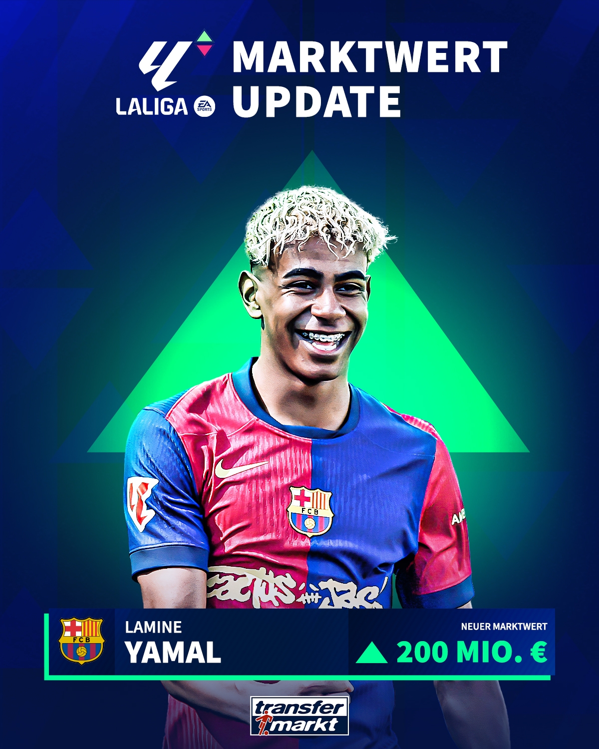 17岁攀上最高的山⛰️亚马尔身价变化:2年内从0飙升到2亿欧🚀 ejjerbqw 2025年06月14日 17:25 42 0 德转昨日更新西甲球员身价,17岁亚马尔身价涨到2亿欧,达到足坛历史第一身价!德转发布亚马尔身价变化视频,亚马尔刚满16岁时被德转赋予2500万欧身价,刚满17岁时直接破亿来到1.2亿欧,如今在18岁前达到2亿欧,不到2年时间便从0飙升到2亿欧。 标签: #身价 #马尔